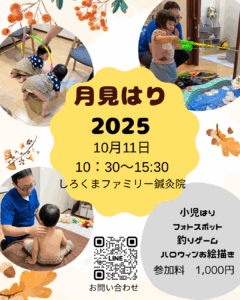月見はりはお子さんの無病息災を願ってお子さんに小児はりを受けてもらうイベントです。🧚大阪でスタートした大師流小児はり、そして月見はりは100年以上の歴史がある伝統的なイベントです。