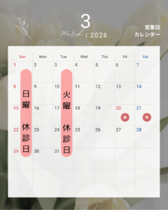 3月20日の祝日は休診日になります。